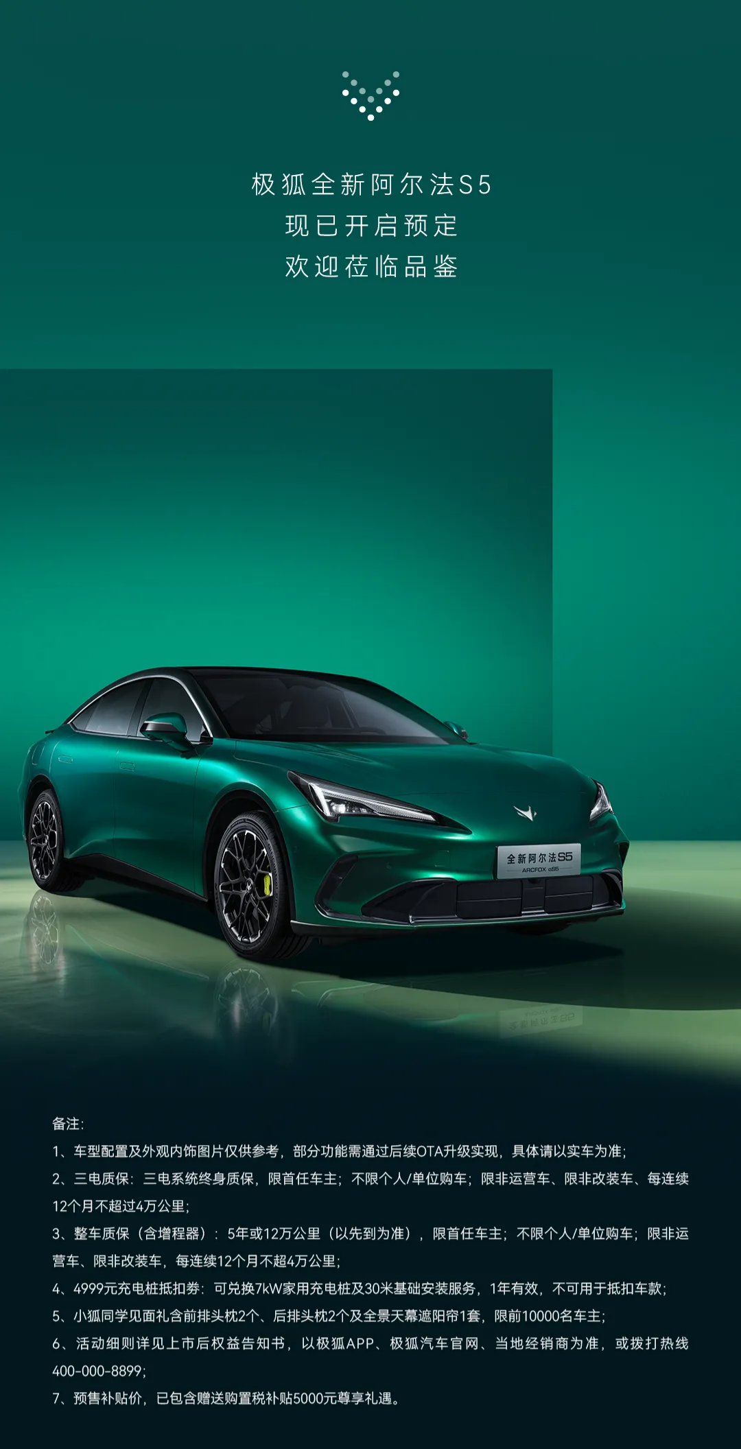 全新阿尔法S5现已开启预售丨预售津贴价11.28万元起